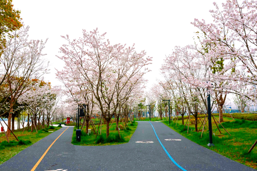 春深渐暖,风拂过京杭大运河的碧波,“运河十里”示范段卸下了冬装,草木抽芽、枝叶舒展,尽显生机。尤其是那樱花,已然缀满枝头,为河岸线添上了动人的粉白亮色。