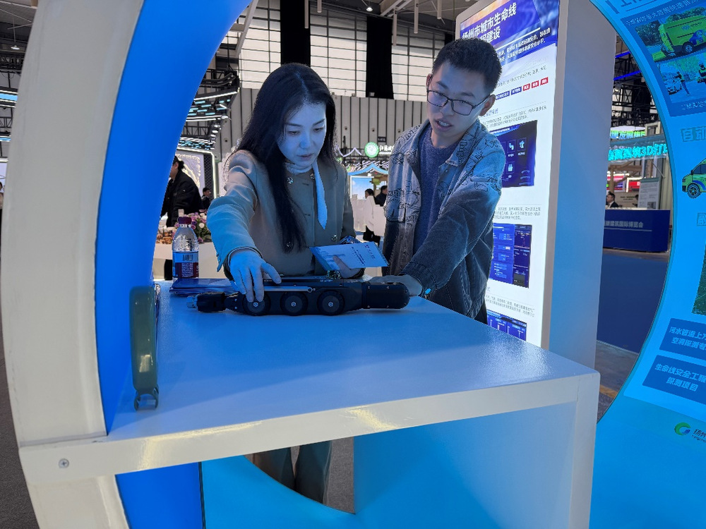 同时,工作人员还展示了公司所具备的从清疏检测到非开挖修复的全流程能力。在管道检测方面,微型检测机器人填补小型管道检测空白;“鸭嘴兽”动力声呐检测机器人可在满管条件下精准研判管道沉积与变形;全地形机器人融合声呐与视频双重检测,适应沙地及污泥淤积的环境;探地雷达可通过剖面识别地下空洞,预防路面塌陷。各类机器人以低扰动、低能耗的检测方式,从源头助力检测环节的绿色低碳转型。在管道修复方面,采用非开挖修复技术相较于传统开挖,不仅具有施工周期短、扬尘少、对交通影响小的优势,同时造价成本更低,施工环节低碳节能、绿色环保。在数字化管理方面,公司结合数字化信息平台与智能化感知设备,实现管网全生命周期的精细化智慧管理,在保障城市污水管道安全运行的同时,持续推动资源节约与环境友好型运维模式落地。