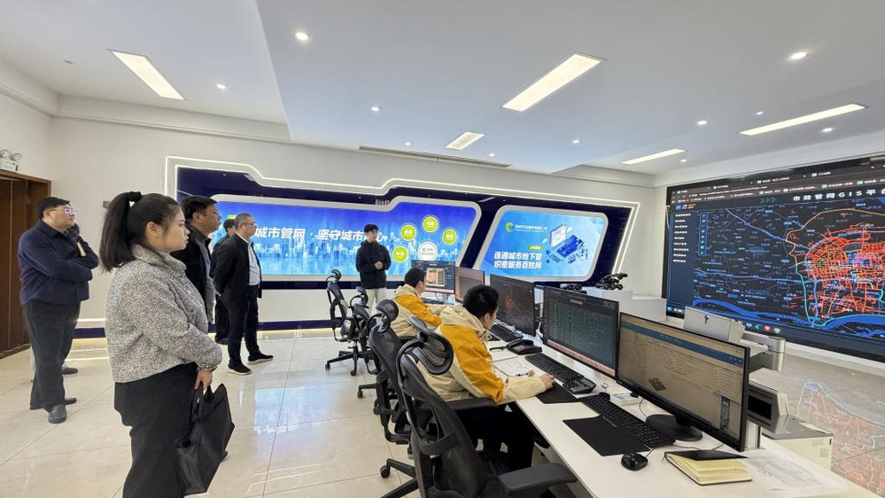 在运行调度中心,古保公司一行详细考察了管网公司智慧排水系统的建设和运行管理情况。技术人员现场演示并讲解了SCADA系统、GIS系统及“城排通”系统等核心业务模块的功能与应用场景。重点展示了安全监管平台——该平台集成数字化台账、线上学习、隐患随手拍及应急闭环等功能,实现了安全管理无纸化办公;同时依托“城排通”系统的智能管控,推动安全管理从“人防”向“机防”深度转型,构建起全程可查、实时可控、闭环可追溯的现代化安全管控体系。
